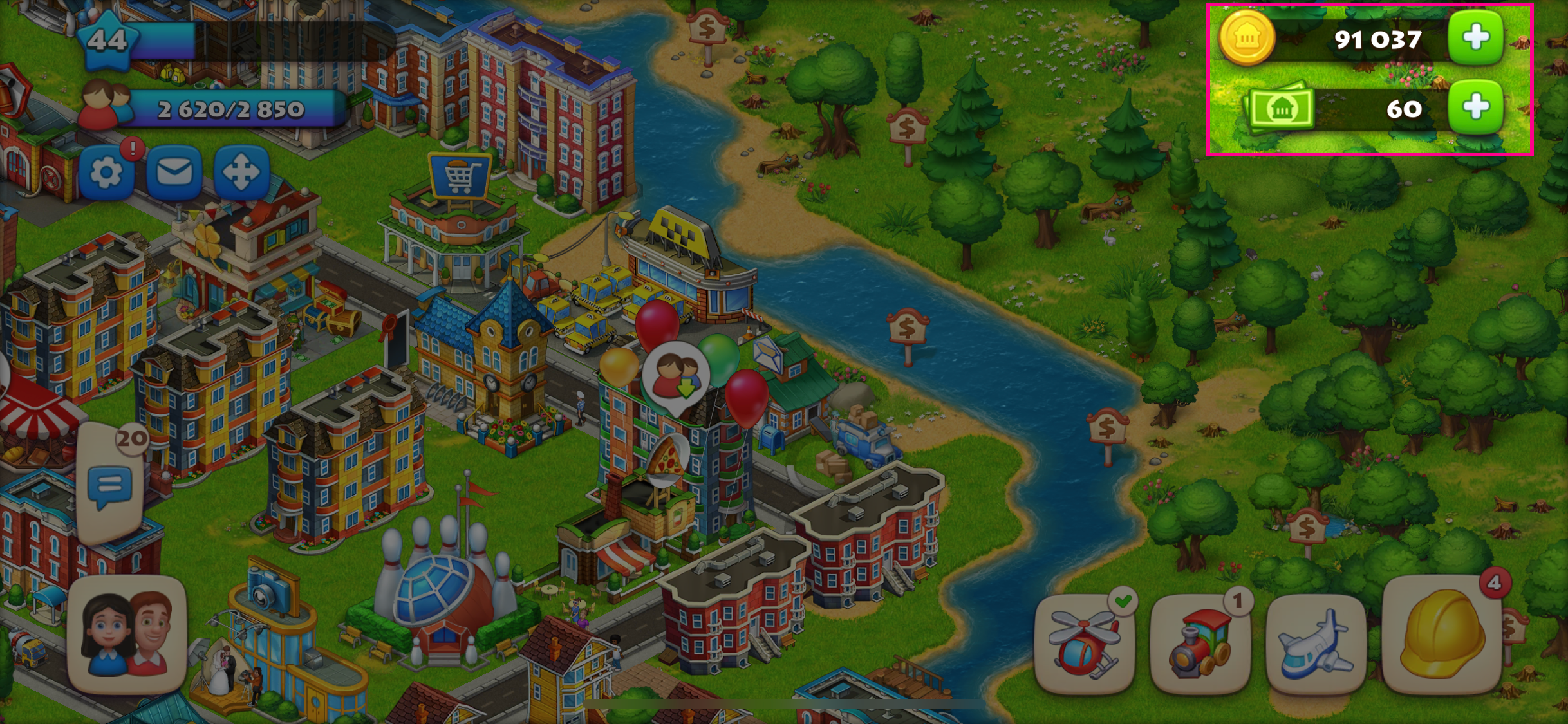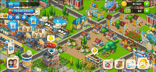 꿈의 마을(Town ship) 역시 메인 인게임 화면에서 재화 정보를 우상단에 배치하고 있다.
