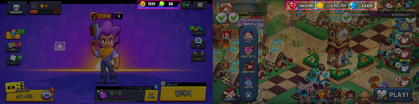 우리가 모바일 게임을 할 때면, 코인과 보석 등의 재화 정보가 화면 상단에 있는 것을 많이 보았고, 또한 이것에 익숙하다.