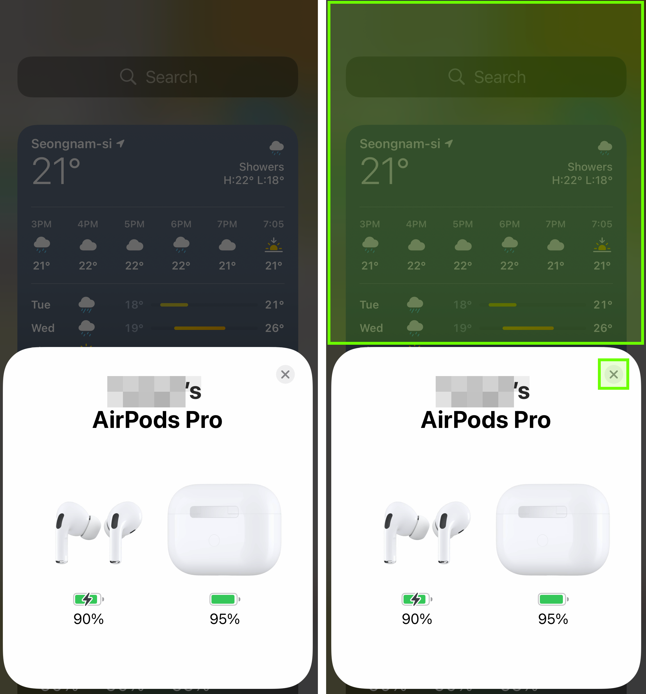 2. 닫기 버튼이 보이지 않음으로써, 딤드 영역이 닫기 기능을 전담한다. 이는 빠른 인지와 결정을 도와 사용자가 인지 에너지를 아낄 수 있도록 해주며, 손의 접근이 편리해져 사용성을 향상시킨다.