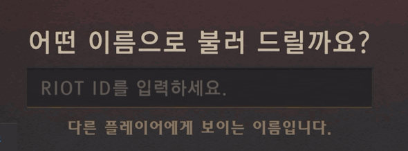 1. 텍스트 필드 속 'RIOT ID를 입력하세요.'라는 카피가 무엇을 입력해야 하는지 안내하고, 입력 행동을 유도합니다. 사용자가 입력할 정보와 공간을 공유하며, 사용자가 해당 내용을 인지 후 입력을 시작하면 사라집니다.