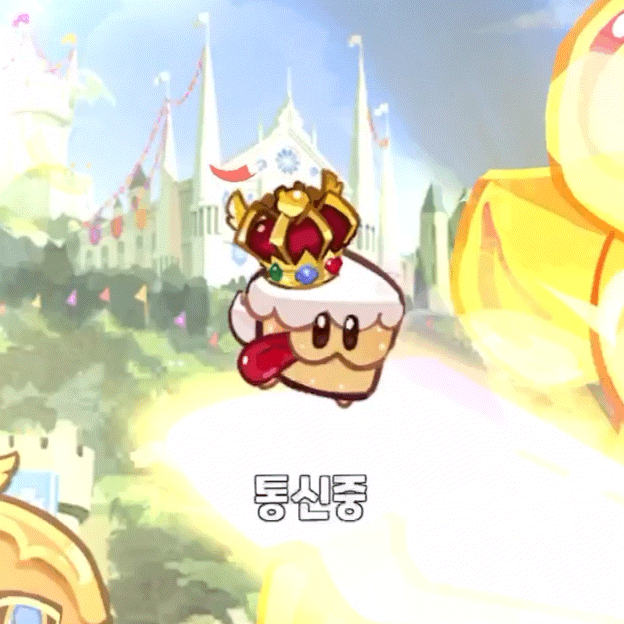 <쿠키런 킹덤> 은 게임에 등장하는 캐릭터 '케이크 들개'를 활용하였습니다. 왕관을 쓴 귀여운 캐릭터가 쿠키런 브랜드의 정체성을 보여주네요.