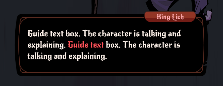 <테일드 데몬 슬레이어>는 앞서 고른 메인 폰트 외에 서브 폰트를 한 벌 더 사용했어요. 본문용 메인 폰트는 가독성의 비중이 높았는데요. 이 서브 폰트는 가독성이 덜 중요한 곳에 사용해 게임의 어둡고 호러블한 분위기를 강화했습니다. 폰트를 통해 적 보스의 목소리가 느껴지는 것 같지 않나요?